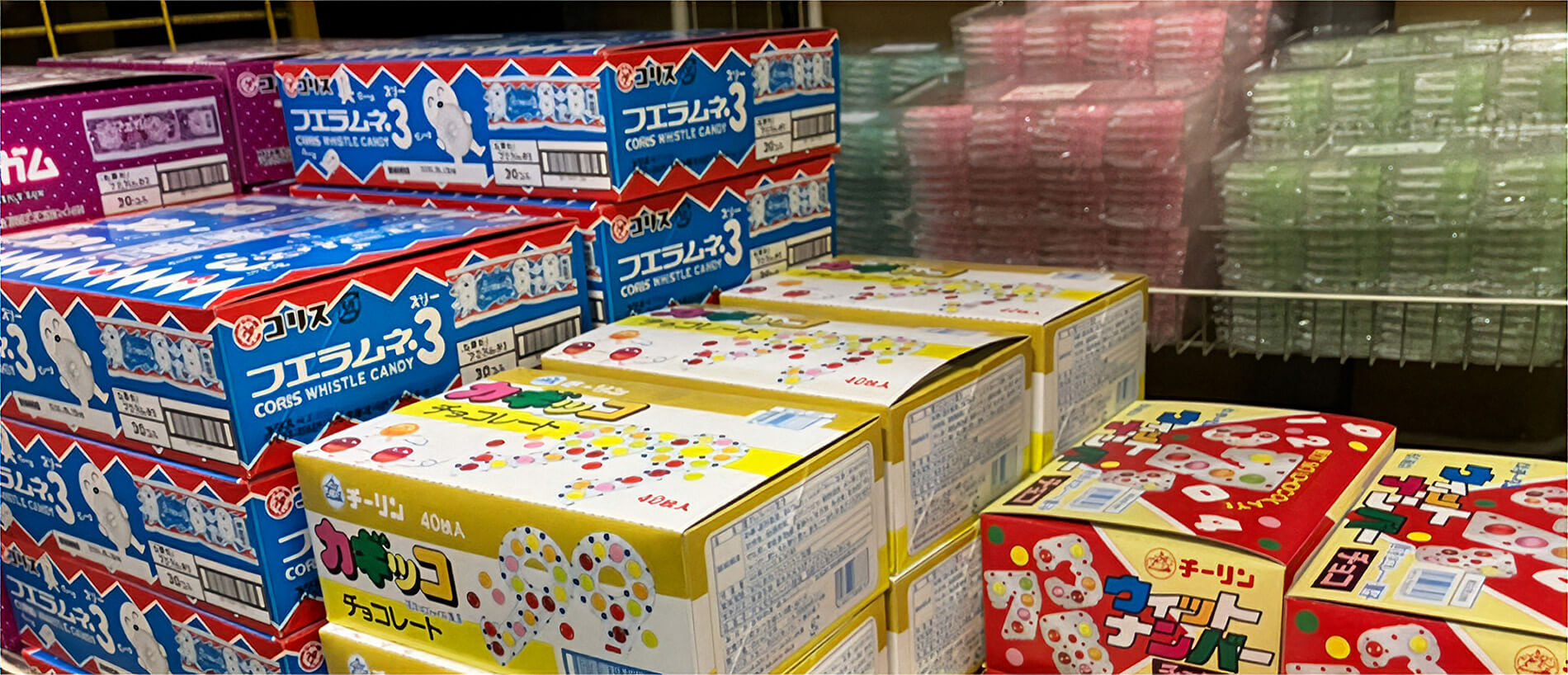 お菓子を一個単位でバラバラと購入するよりも、箱単位・ケース単位なら格安でご購入いただけます。